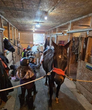 Workshops on horse care, grooming, tacking, show prep, groundwork, and confidence-building.